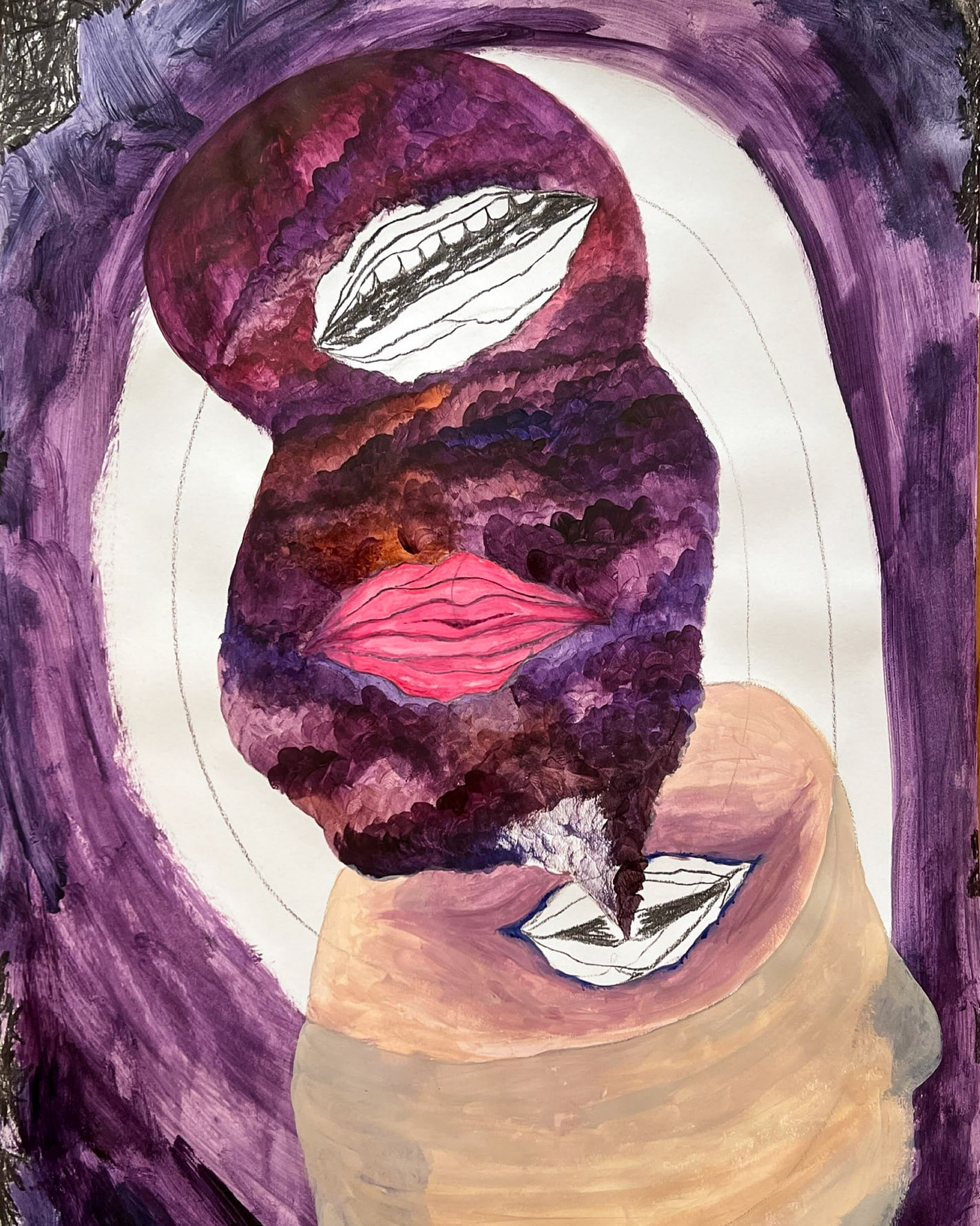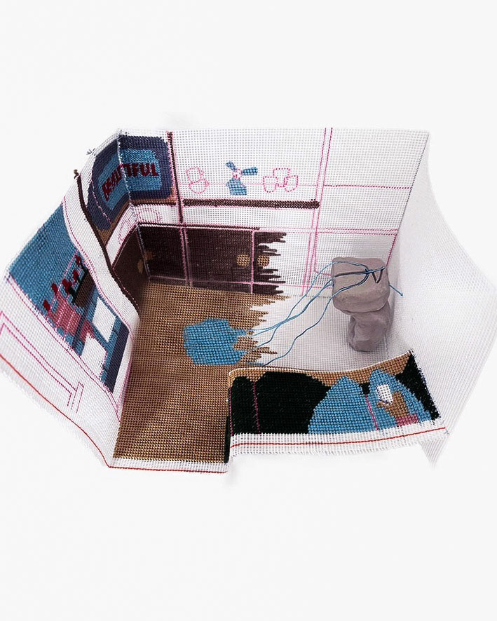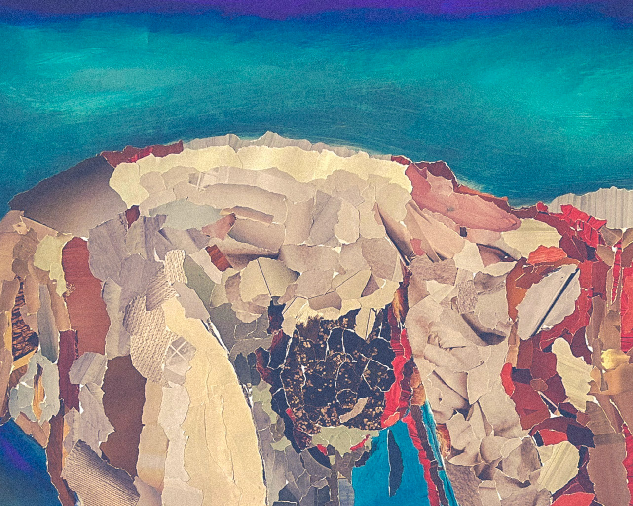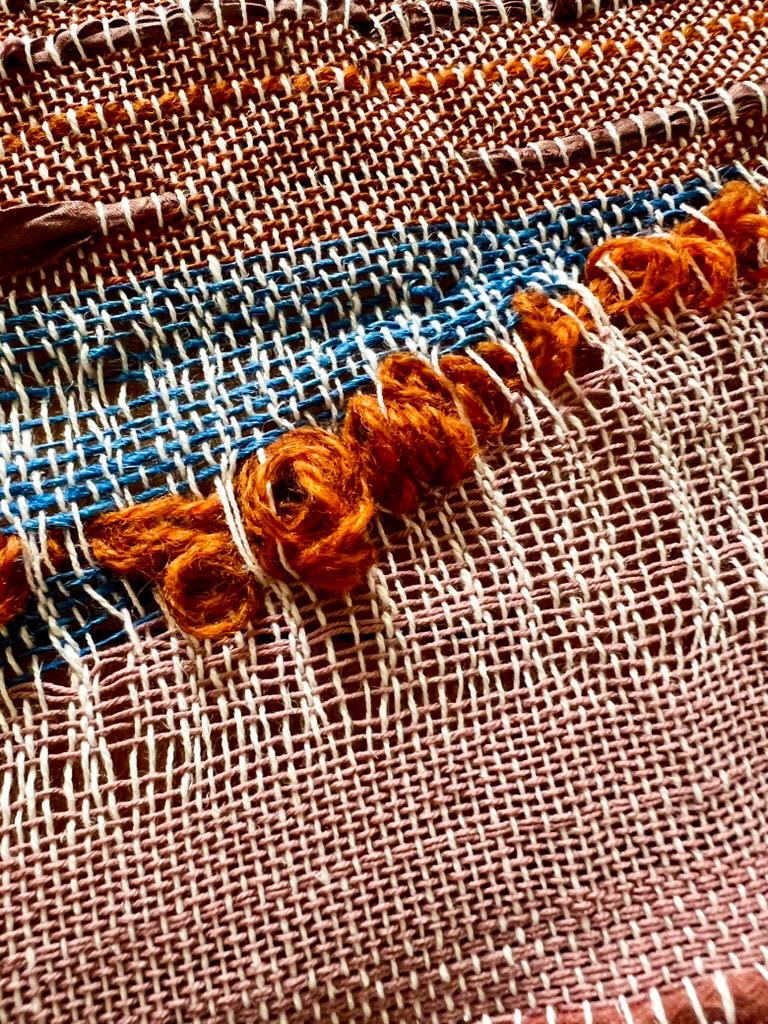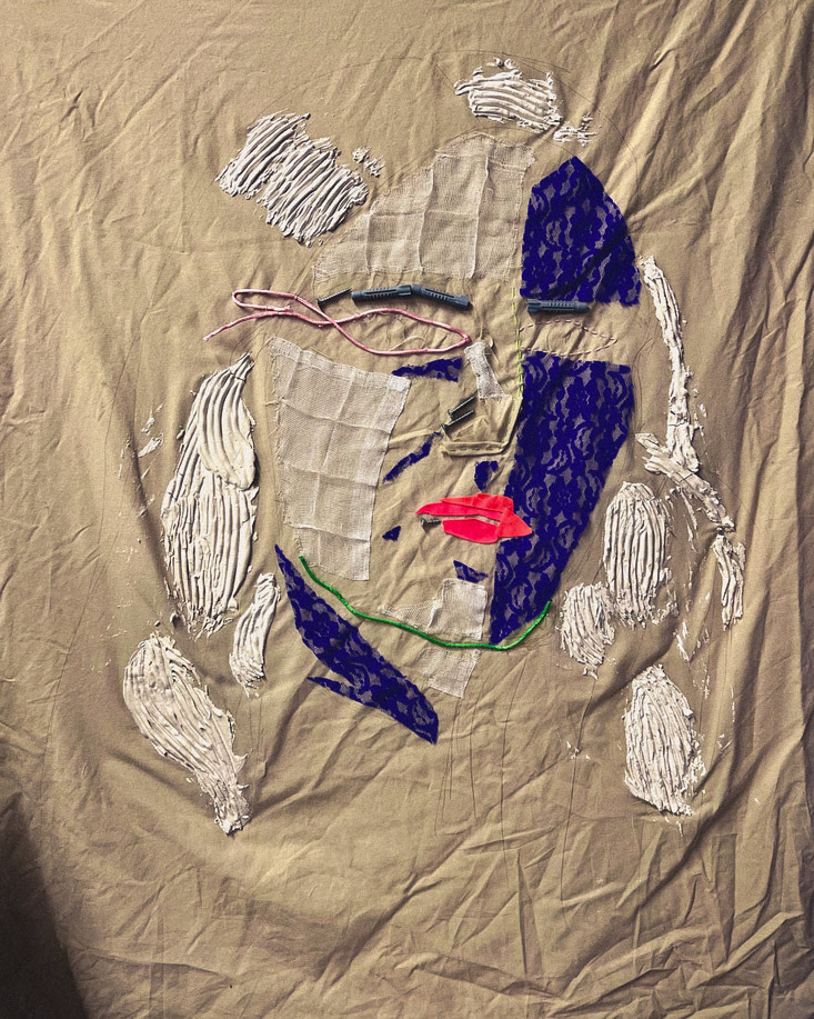 mixed media (textile collage, acrylics, flocking, weaving), 2025