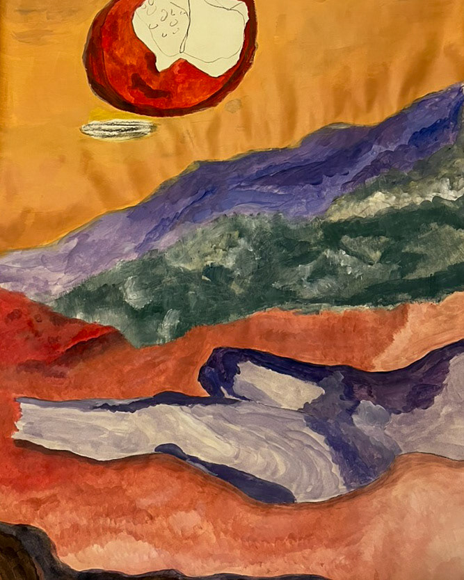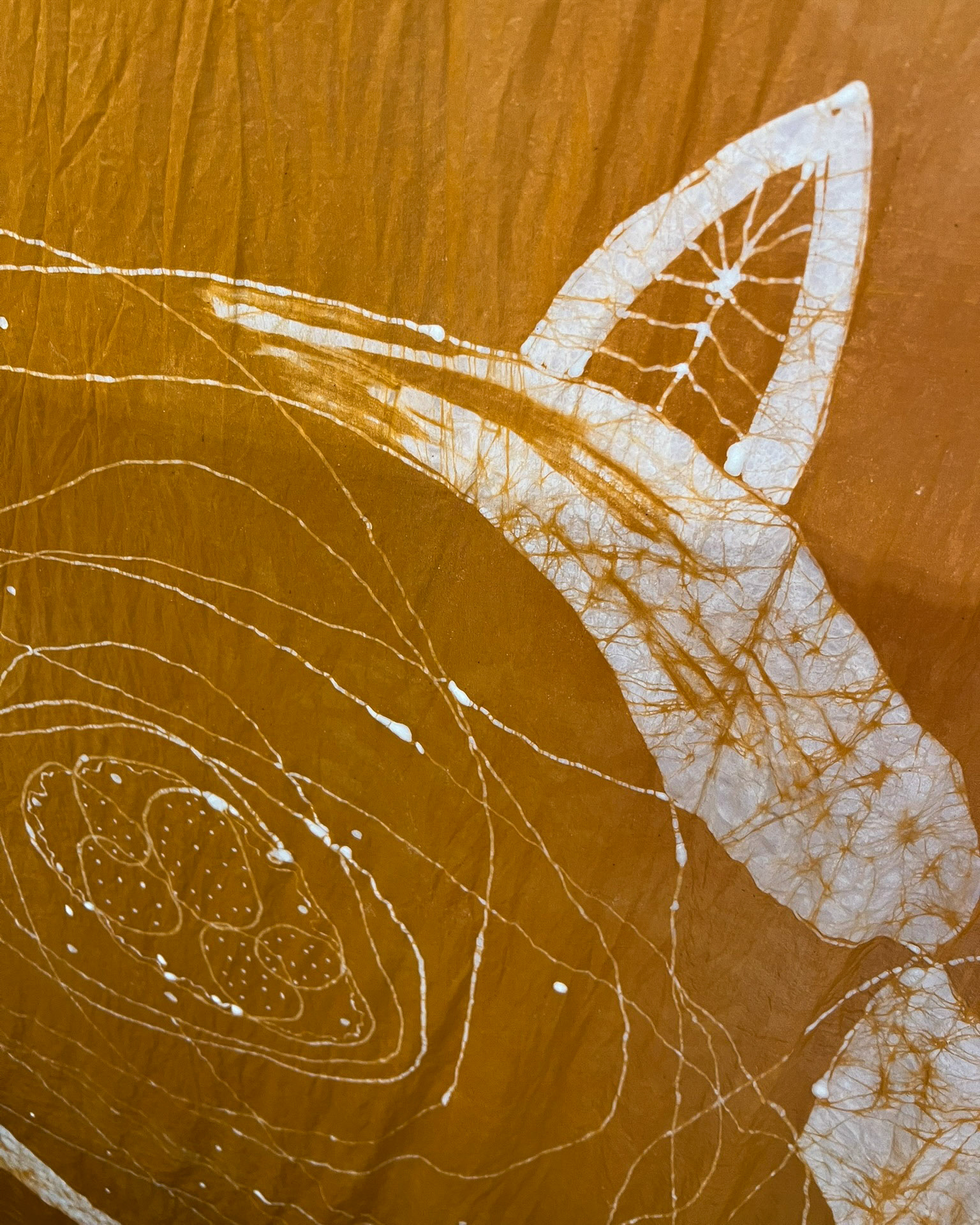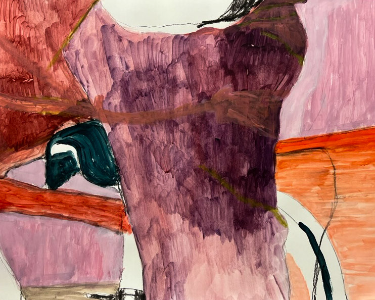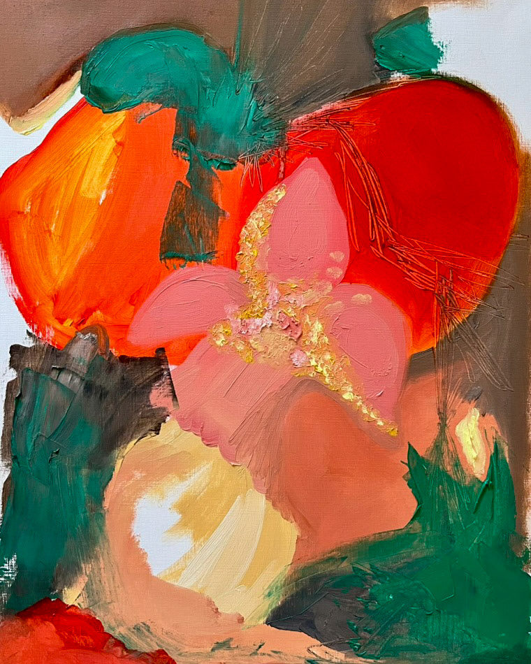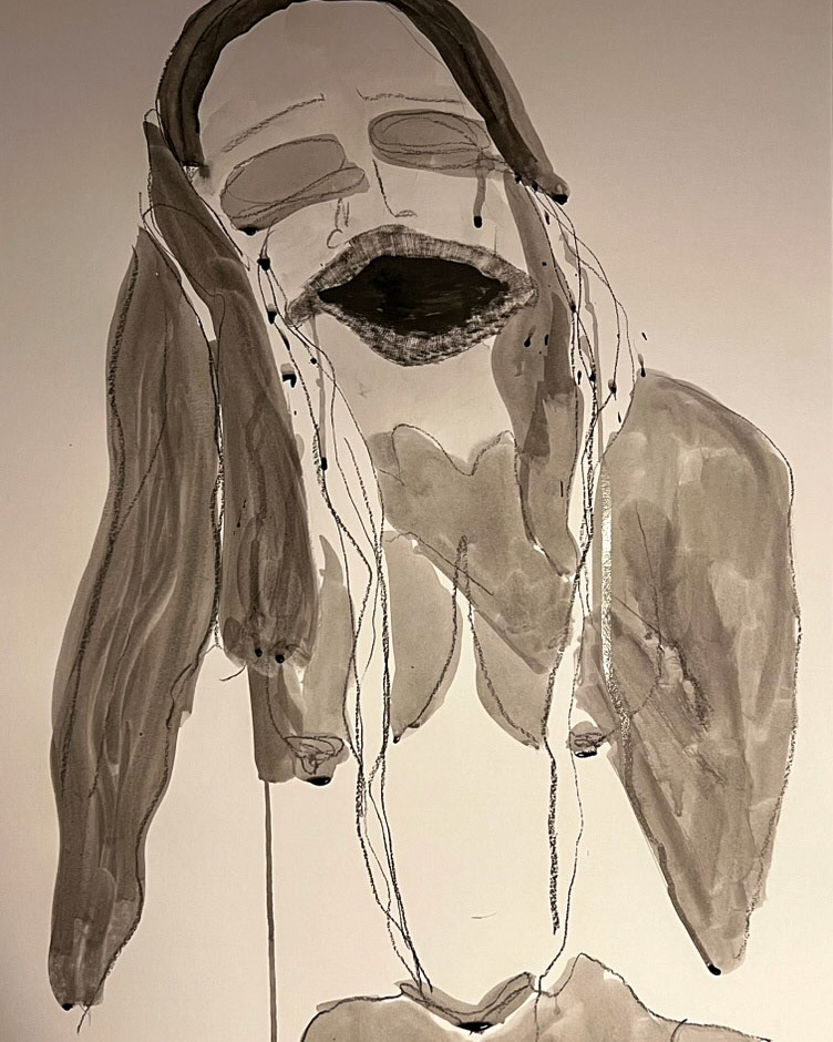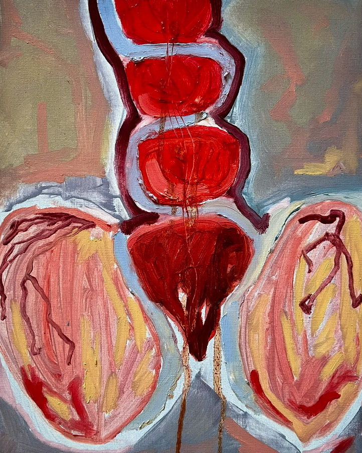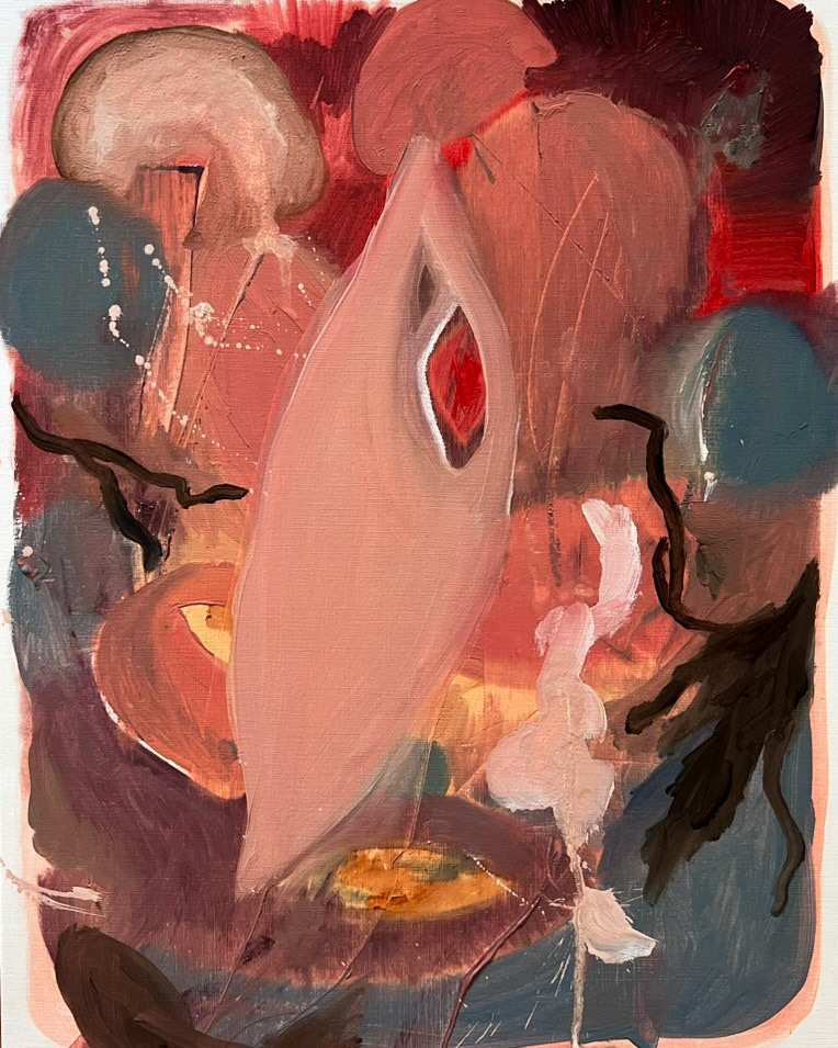 mixed media (textile collage, acrylics, flocking, weaving), 2025